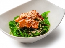 Водоросли Чука, угорь, ореховый соус, кунжут