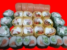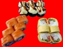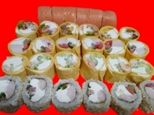 ЧИКЕН РОЛЛ, БУРИТО, СЯКЕ ТЕРИЯКИ, РОЛЛ С ЖАРЕНЫМ ЛОСОСЕМ.(24 КУСОЧКА )