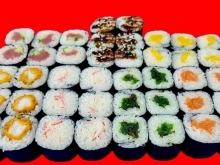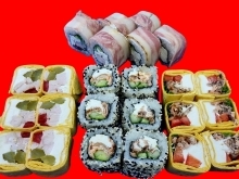 Два соуса,бурито,филадельфия с огурцом,тортилья с тунцом,запеченный с курицей(30шт)