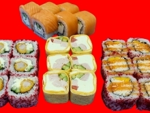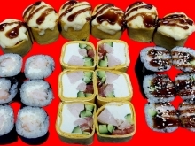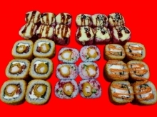 Темпура курицей, темпура с крабом Каппа хосомаки, запеченный с курицей, запеченный с тунцом, Калифорния